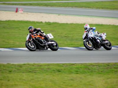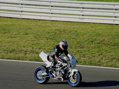 seine XB ölt an den Stößelstangencovern aber das scheint nicht wirklich schlimm zu sein, die Sturzfolgen sind schnell behoben. Rico Penzkofer war wegen des Wetters auf der für ihn ungewohnten Buell nicht angetreten. Aber die größte Überraschung folgte noch. Im ersten Rennen der ProThunder schoß Holger mit einem unglaublichen Start nach vorne und nahm den beiden