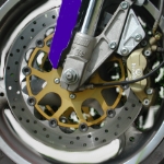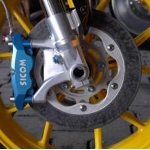 Silicium Composite Ceramic Bremsanlage von Sicom. Etwas leichteres und beständigeres dürfte schwer zu finden sein. Kompletter Kit bestehend aus Vorderrad mit Achse, Gabelfüße, Bremssätteln, Scheiben, Belägen und Handpumpe. Mehr >>>