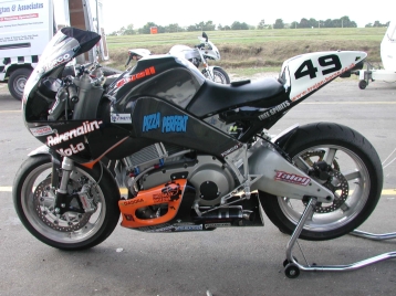 Dirk Scheffer, in Europa wohl einer der erfahrensten Rennfahrer auf Buell, pilotiert u.a. die Rennmaschine von Buell Bonn. Von ihm wollten wir wissen wo wir mit unseren Entwicklungen stehen. Prüfstandergebnisse sind Schall und Rauch -wenn sich das Ganze nicht auf der Straße umsetzen lässt.