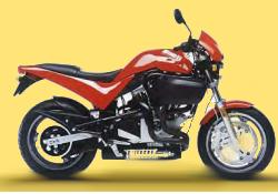 1997 rundete dann die M2 die Modellpalette nach unten ab. Äußerlich unterschied sich die “Cyclone” durch schwarz lackierte Stahlkrümmer, den fehlenden Drehzahlmesser und ein geändertes Frontshield von der S1. Zum einsatz kam ein gekürzter S3 Rahmen der eine Kunststoffverkleidung mit einer 2-Personen Sitzbank trug. In den USA wurde die M2 zur Unterscheidung von den teureren Modellen S1 und S3 mit geringerer Leistung