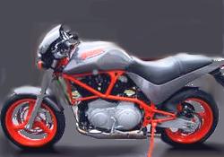 Gerhard Mörk, schwäbischer Buellhändler mit Sinn für Stil und Geschäft, gab den Rohrrahmenmodellen einen würdigen Abschied. Basis waren die M2 “Cyclone” Sondermodelle mit den orangenen Rahmen und Felgen, denen Mörk ein steiler stehendes Heck anschweißte. Noch ein S1 Heck und ein anderer Luftfilter -fertig war eine bildschöne Retro-S1. Wahlweise konnten natürlich noch jegliche weiteren edlen Teile verbaut werden.