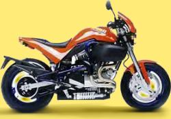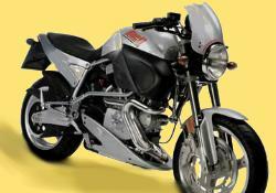 kennzeichnete. Der Rahmen hatte ein angeschraubtes Heck aus Aluminiumguß erhalten, der Lenkkopf, bisher ein angeschweißtes Stahlrohr, war ebenfalls einem eingeschweißten Stahlgußteil gewichen. Das Hinterrad wurde in einer Schwinge aus Leichtmetallguß geführt. Der berüchtigte “Helmholtzresonator” - die voluminöse Luftfilterbox war deutlich gefälliger gestaltet als an den bisherigen Modellen. Auf der Gegenseite war eine Luftleitverkleidung vorgesehen die dem hinteren Zylinder zusätzliche Kühlluft zuführen sollte. Der Kunststofftank mit intergrierter Benzinpumpe wurde durch ein Tankcover aus eingefärbten Kunststoff verdeckt. Belüftungsöffnungen darin stellten sich als nicht notwendig heraus und verschwanden ab dem 2000er Jahrgang wieder. Ein asymetrisches Frontshield und ein Motorspoiler komplettierten den Kunstoffsatz der X1. Der Thunderstormmotor war unverändert geblieben, ein elektronisches Motormagement steuert jedoch die Einspritzanlage und die Singlefire Zündung, weiterhin wurde die Krümmerführung verändert. Buell gab für die X1 ebenfalls 101 SAE PS an, in der deutschen TÜV-Version bleiben davon 89 PS übrig.