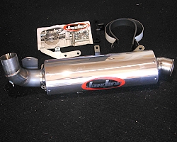 vorne und über einen eigenen Halter hinten ebenfalls am Motor. Jardin ist als erster Hersteller den Weg gegangen Schalldämpfer und Halterungen für den Motorspoiler konsequent zu trennen. Ergebnis war ein zuerst in Aluminium gefertigter Anbausatz der wegen vereinzelter Brüche nun sehr haltbar in galvanisiertem Stahl hergestellt wird. Eine aufwendige aber sehr dauerhafte Lösung. Die Schalldämpfer können wir in Aluminium poliert, Titan matt und Carbon liefern. Der Carbondämpfer erfordert eine erhöhte Aufmerksamkeit bei der Kontrolle der Dämmpackung, da bei Carbondämpfern die Gefahr des Durchbrennens besteht wenn der Dämpfer nicht rechtzeitig neu gepackt wird. |