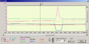 Mit der umfangreichen Auswertesoftware ist es nun möglich die aufgezeichneten Daten (bis 44 Minuten) in Realtime abzuspielen und den Zusammenhang der gemessenen Werte entweder über die konfigurierbaren Kurven oder über analoge Zeigerinstrumente abzulesen. Weiter besteht die Möglichkeit einzelne Werte darzustellen oder mit anderen Werten in ein Verhältnis zu setzen und diese als Grafiken oder Tabellen auszugeben. Wir haben in den vergangenen Monaten mit der englischen Version der Software gearbeitet, zwischenzeitlich ist eine deutsche Version verfügbar die wir z.Zt. prüfen.