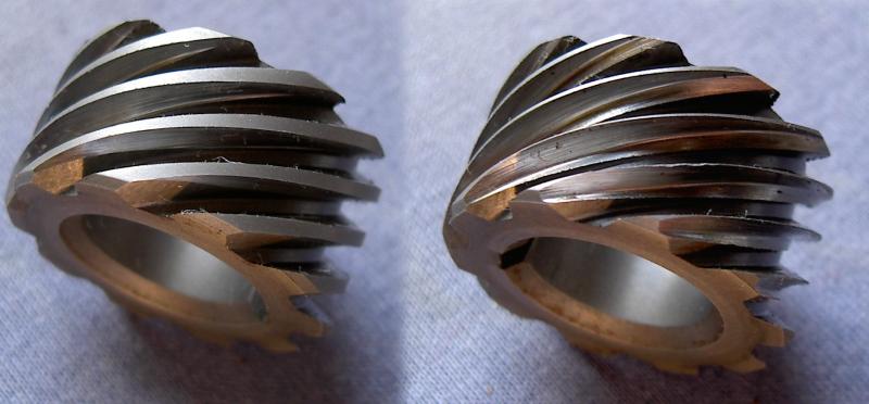 Das kurbelwellenseite Abtriebszahnrad der Ölpumpe ist die Achillesferse aller Rohrrahmenbuells. Noch ist nicht geklärt warum einige Motoren sehr stark und andere nie betroffen sind. Fest steht alle Baujahre sind betroffen egal ob geschraubte oder gepresste Kurbelwelle. Der jüngste dokumentierte Schaden war ein 2001er Modell mit unter 15.000km Laufleistung. Ursache könnte eine Schwingung des Kurbelwellenstumpfes bei häufiger Fahrt oberhalb von 5.500 U/min sein, aber das ist (noch) eine Mutmaßung. Wahrscheinlich spielt, außer der Fahrweise, auch die individuelle Wuchtung des Kurbeltriebs eine Rolle. Schadensbild Das Antriebsritzel auf dem Kurbelwellenstumpf nützt sich auf ungefähr der Hälfte des Umfangs derat ab das die Zahnflanken dann komplett wegbrechen und die Ölpumpe nicht mehr angetrieben wird. Die Folge ist oft ein kapitaler Motorschaden. Das obere Bild zeigt ein Ölpumpenritzel aus einer 2000er M2 mit 22.000km kurz vor dem wegbrechen der Zähne. Die original ca. 1,3mm breiten Zähne sind außen auf 3/100mm rasiermesserscharf abgelaufen. Das Gegenritzel auf der Ölpumpe war, wie meistens, ohne sichtbaren Verschleiß. Maßnahmen