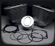 HARLEY TwinCam 1.605 ccm Satz Bolt-in Bigbore 3-15/16 bore -98 ci.. Passt ohne bohren des Motorgehäuses. Kompletter Kit bestehend aus einem Paar Revolution Zylinder fertig gebohrt und gehont. Hurricane Kolben mit Total seal Kolbenringen, Bolzen und Sicherungen, Cometic Dichtungen. Verdichtung 10,5:1. Zylinderfarbe: silber