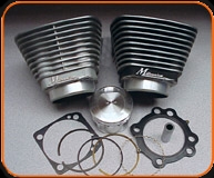HARLEY SPORTSTER 1.250 ccm Satz. passend für 5-Gangmodelle ab 1991 ohne Änderungen auf das serienmäßige Motorgehäuse. Kompletter Kit bestehend aus einem Paar Revolution Zylinder fertig gebohrt und gehont. Hurricane Kolben mit Total seal Kolbenringen, Bolzen und Sicherungen, Cometic Dichtungen. Verdichtung a.A.. Zylinderfarbe: silber