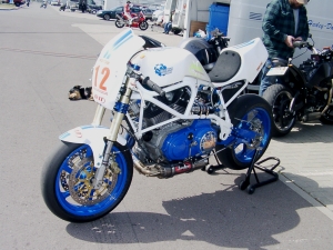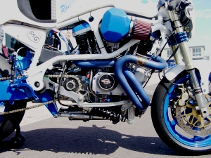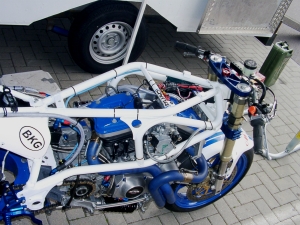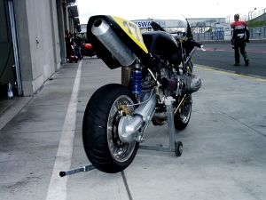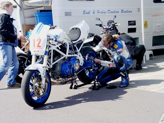 Wir hatten den Boyracer über Winter komplett umgekrempelt, Die Fahrwerksgeometrie wurde von Herbert Strassmeier radikal geändert. Der neue M-Tek Shortstrokeattack Kurzhubmotor mit seinen 1170cc soll sich in dieser Saison gegen die Hubraummonster von Holger Aue und Dirk Scheffer (Buell-