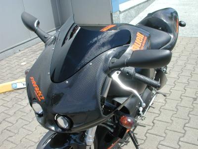 Die Carbonteile entsprechen exakt den Originalabmessungen, wobei das Heck rein einsitzig ausgeführt wurde. Zusätzlich sind noch Rahmenschützer aus Carbon lieferbar. Sämtliche Originalteile, wie Scheibe, Spiegel usw. passen natürlich. |